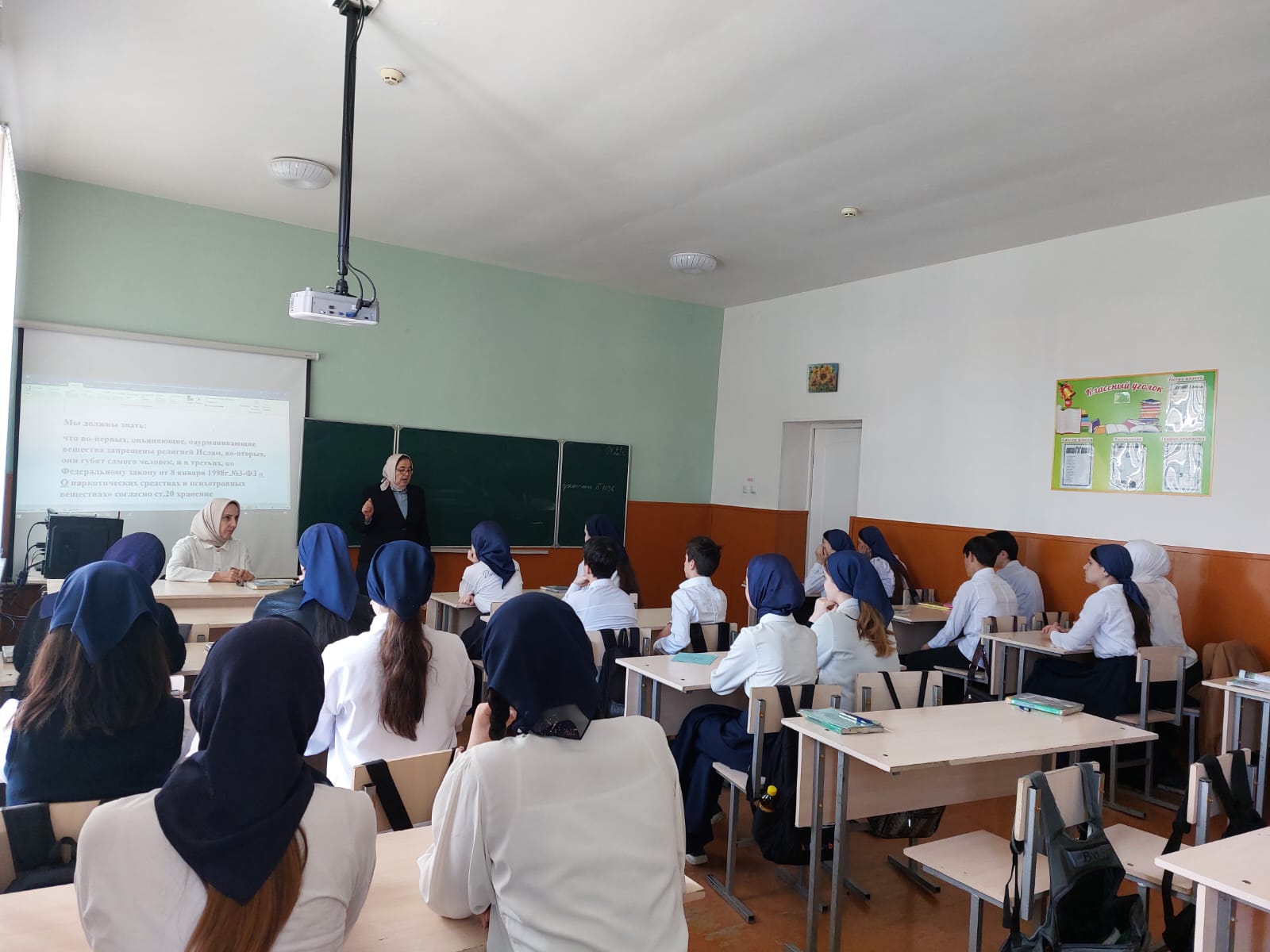 В ходе беседы учащимся была показана презентация « Религия Ислам о вредных привычках» а затем, что говорит по этому поводу Закон.